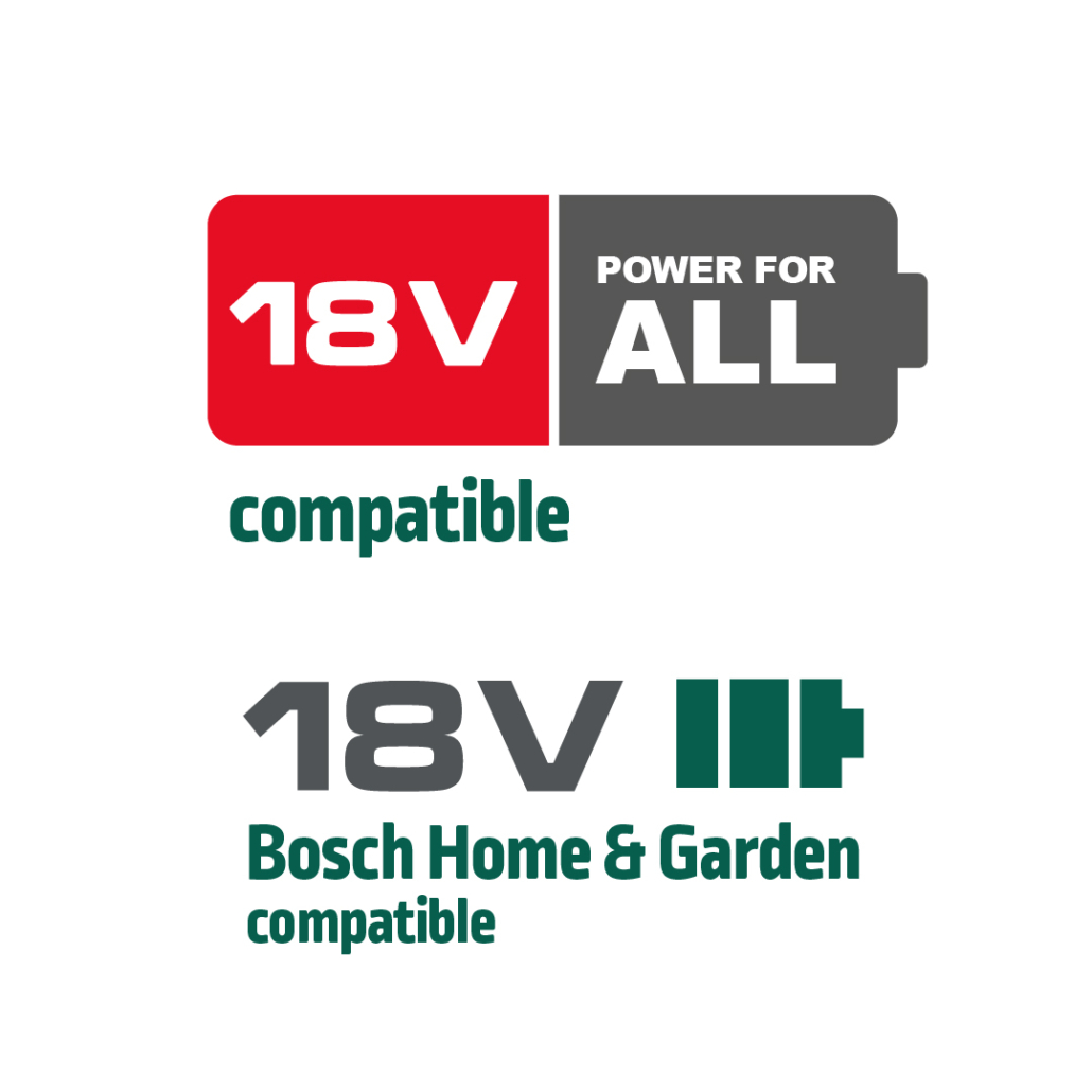 Das ALKO 18V Akkusystem ist mit dem 18V Bosch Home & Garden System voll kompatibel.