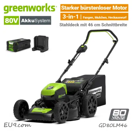 Weitere Informationen – Greenworks 46cm 80V Akku-Rasenmäher