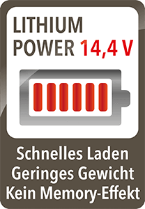 Die 14,4V Lithium Power Akku Technik bietet eine konstante hohe Saugleistung und lange Laufzeit. Die modernen Li-Ionen Akkus haben keinen Memory Effekt und garantieren eine lange Akku Lebensdauer.