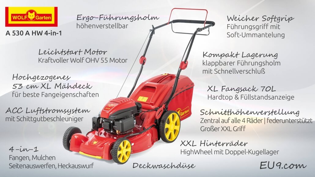 Wolf-Garten A 530 A HW 4-in-1 Benzin-Rasenmäher – Vorteile