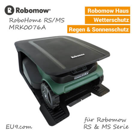 RS Modell-Plattformen ab BJ 2015 (3. Gen.) oder Roboter mit neuem Software Update haben zusätzlich einen eignen Robohome/Shelter-Modus. Der Roboter fährt kurz heraus, erkennt den Regen und fährt sofort wieder in sein sicheres Zuhause zurück. Ältere RS Roboter ohne Shelter-Modus brauchen bei der Erkennung länger und fahren ein Stück am Rasen. Nichtsdestotrotz in beiden Fällen steht der Mähroboter geschützt unter seinem Carboard.