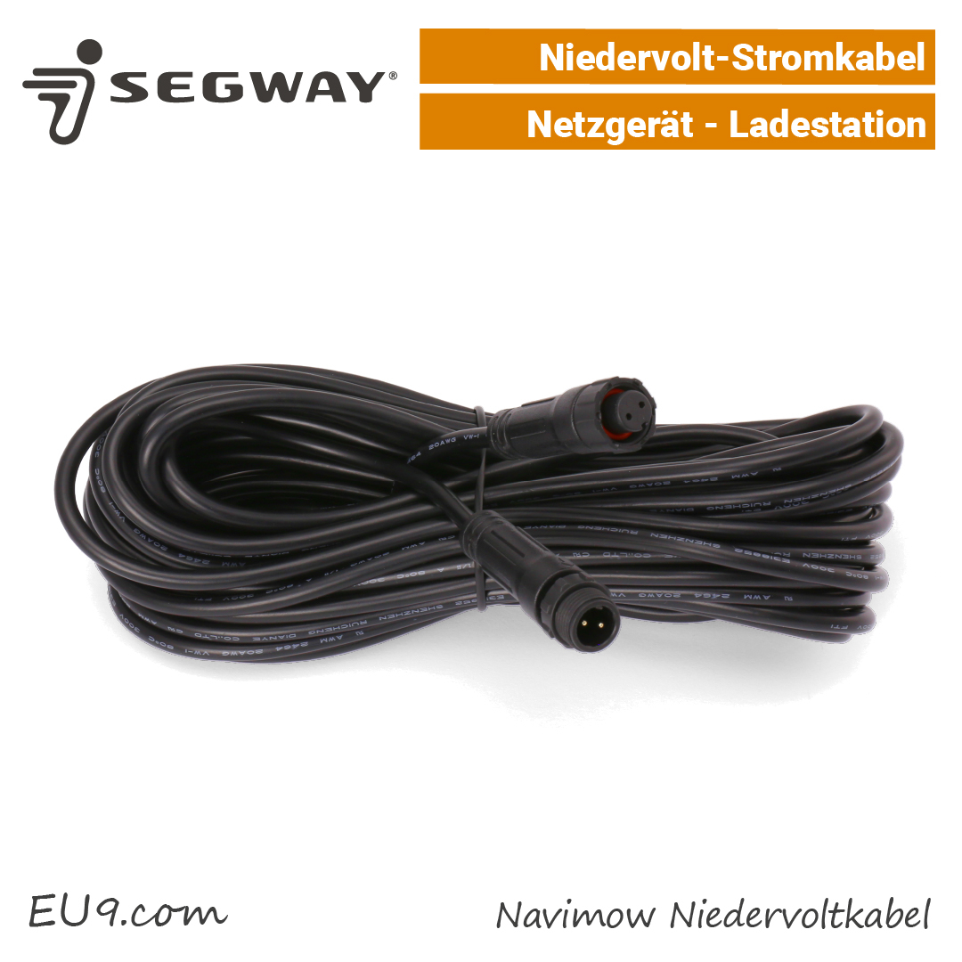 Das Segway Niedervolt-Stromkabel 10m ist ein Ersatzkabel und kann auch als Kabelverlängerung verwendet werden. Einfach an der wassergeschützten Steckverbindung anstecken bzw. anschrauben und am Boden mit Rasennägel fixieren.