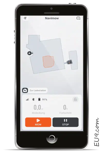 Der Segway H 800E Mähroboter benötigt für die Kartierung Bluetooth. Dazu steuert man mit der APP den Navimow um die Mähfläche. Hier sollte jedoch der Abstand von Smartphone zum Mäher nie mehr als 6 Meter betragen. Die restliche Bedienung des Gerätes erfolgt über Mobilfunk.