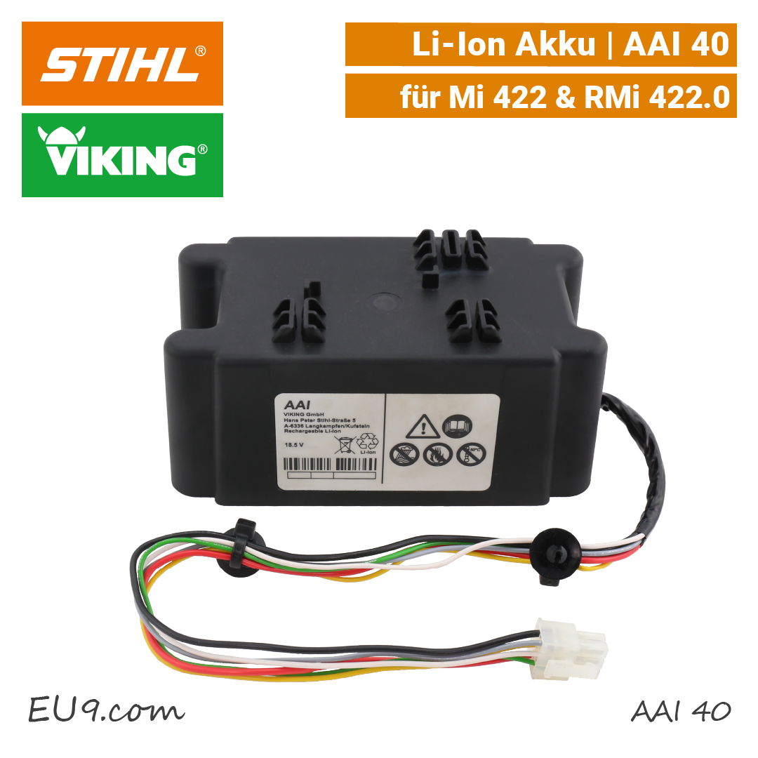 Der original Stihl AAI40 Akku passt für die älteren Viking Mi422, Mi422.1 & Stihl RMi422.0 Serien und bietet neue Kraft für den Rasenschnitt.