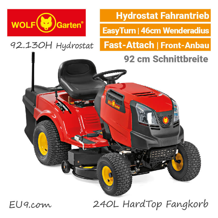 Der kompakte Wolf-Garten 92.165 H Rasentraktor mit 240L Fangkorb hat eine Schnittbreite von 92cm und ist besonders einfach zu Fahren. Mit dem komfortablen Hydrostat Antrieb flitzen Sie ohne zu schalten über den Rasen. Einfach das das Fahrpedal mit leichten Fußdruck betätigen und Vorwärts- oder Rückwärts fahren.